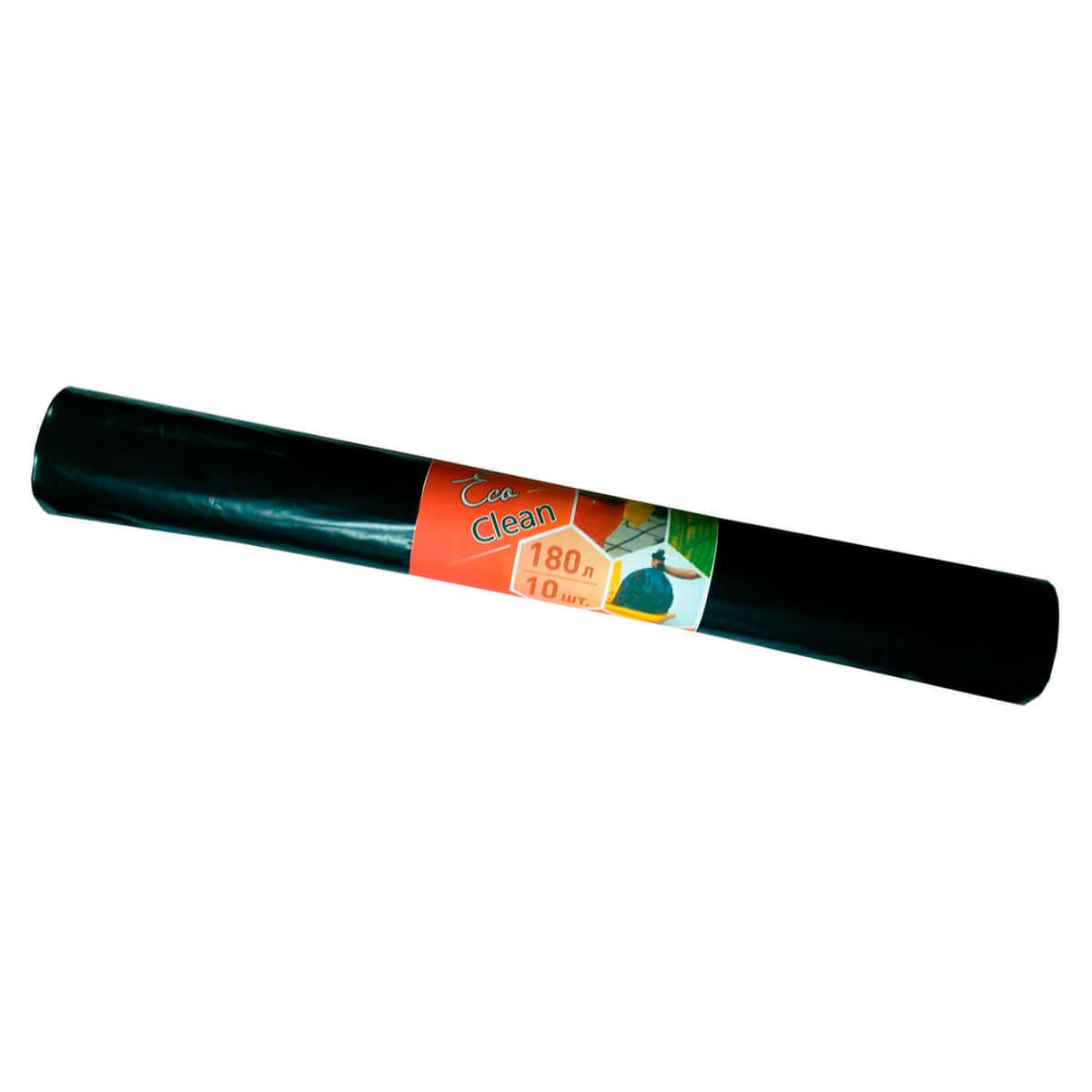 Мешки для мусора 180 л, черные, в рулоне 10 шт., ПВД, 30 мкм, 1060х800 мм, Концепция Быта EcoClean, 603737