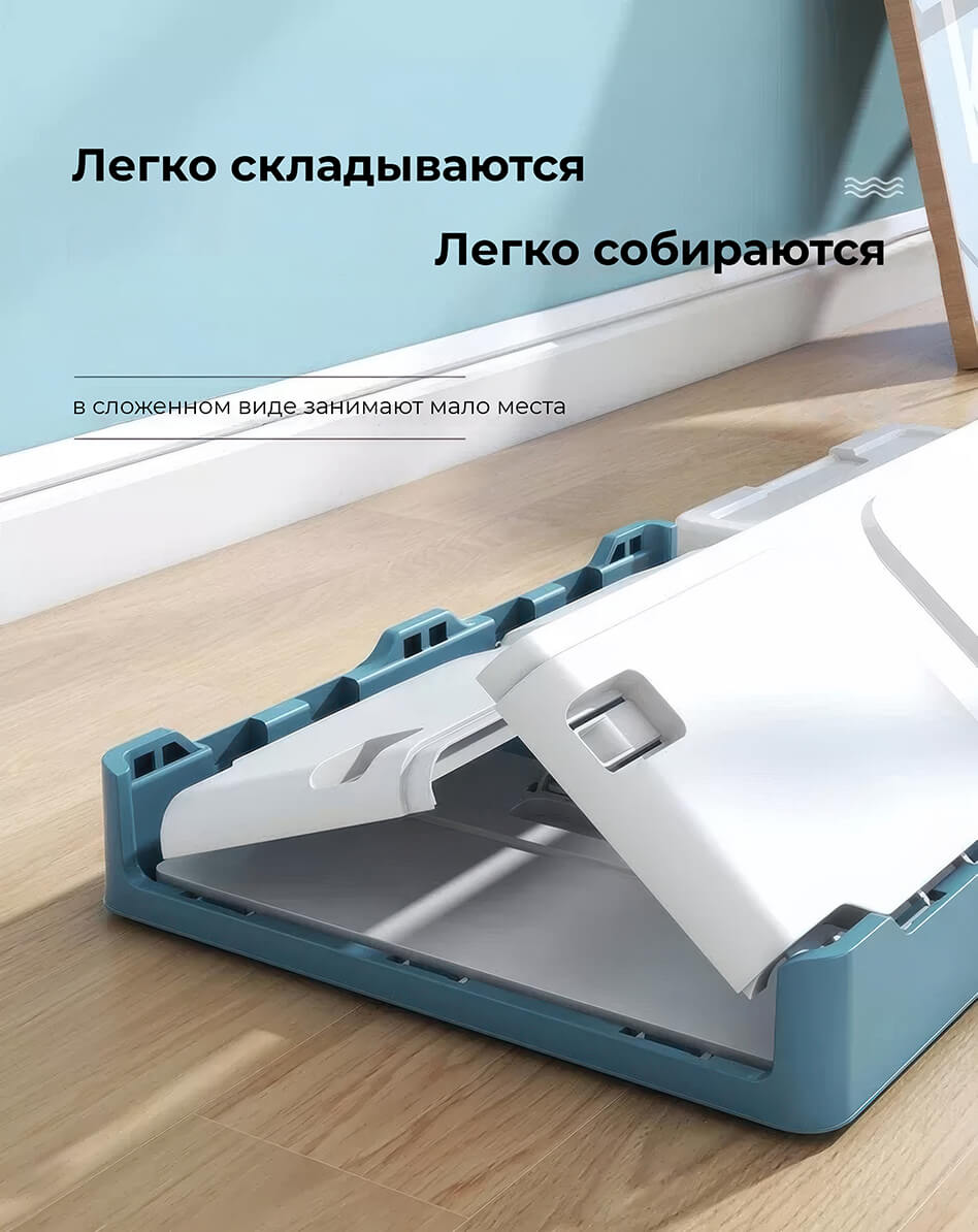 Этот пластиковый складной ящик сочетает в себе прочность, функциональность и современный дизайн. Белые стенки придают ощущение чистоты и простора, а синее дно добавляет глубины и элегантности, создавая гармоничное сочетание. Пластиковый контейнер идеально подходит для хранения одежды, игрушек, документов, мелочей и бытовых принадлежностей.