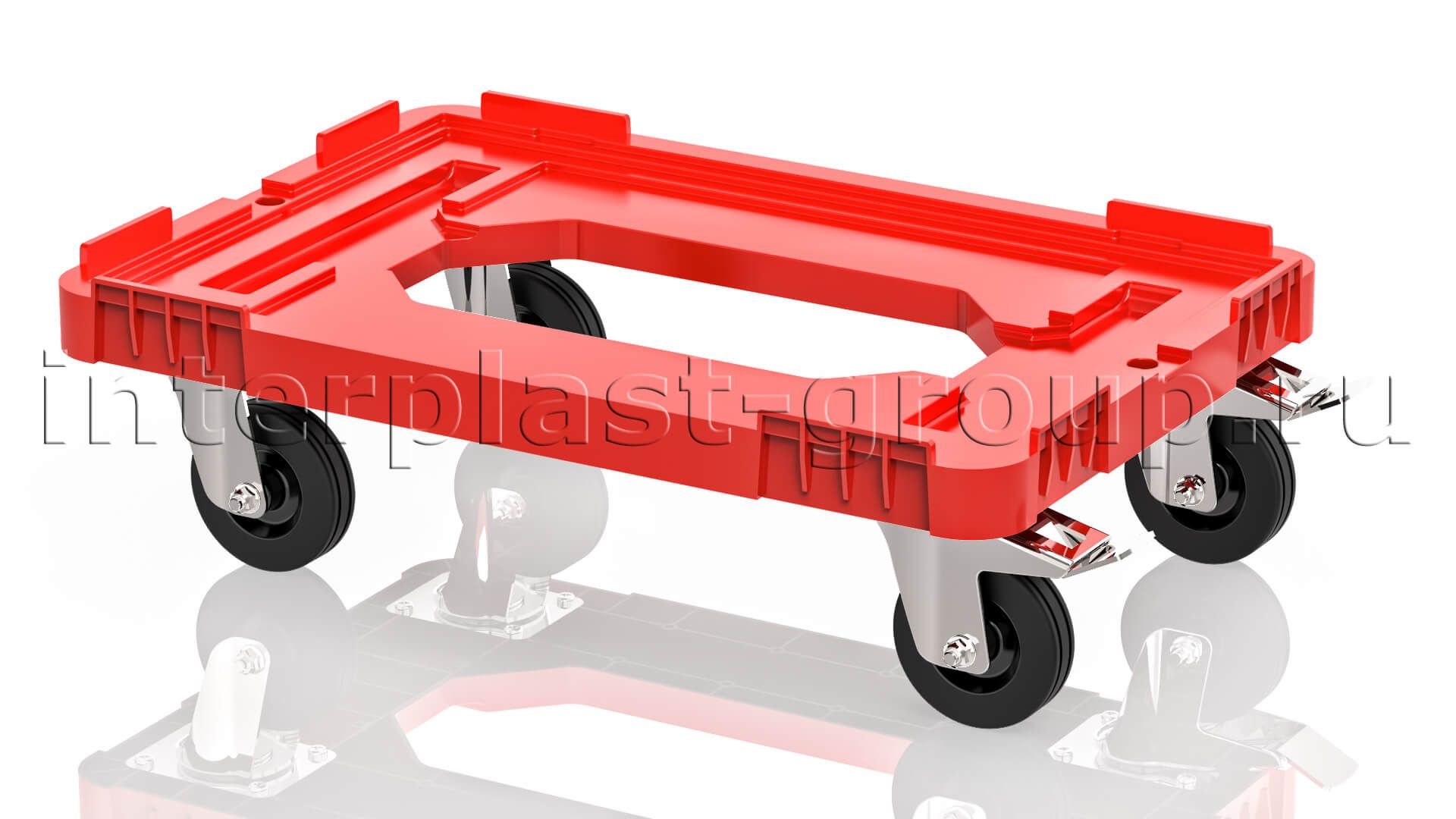 Тележка пластиковая с отверстием 2 колеса с тормозом красная в Новомосковске