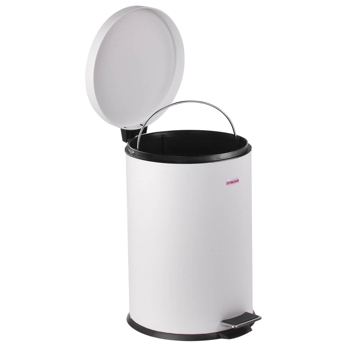 Ведро-контейнер для мусора (урна) с педалью LAIMA Classic, 12 л, белое, глянцевое, металл, со съемным внутренним ведром
