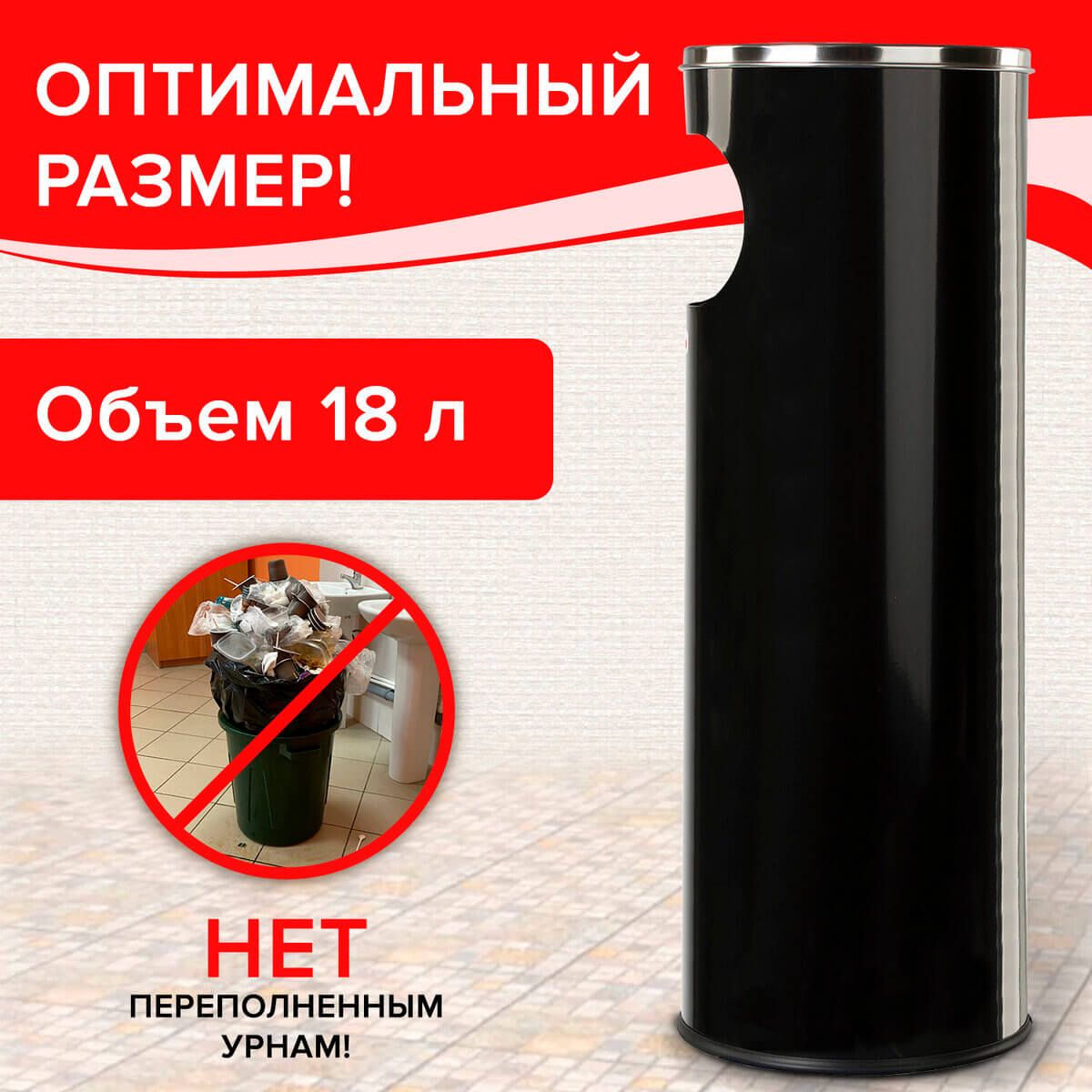 Урна с пепельницей 18 литров, нержавеющая сталь, черная, LAIMA PROFESSIONAL в Новомосковске